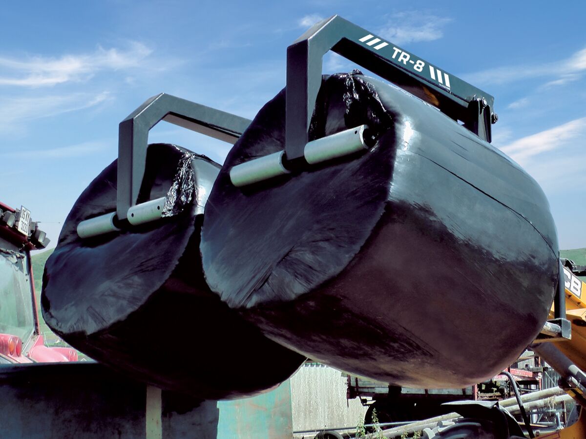 The TR range of bale handlers by JM Agri-Design makes loading and unloading wrapped or unwrapped bales, whether they are round or square, easy and efficient. The unique patented over-arm design incorporates rotating rollers and a check valve, to ensure a consistent grip at all times. There are 3 models in the range, TR-3 (tractor loader), TR-4 (for loading shovels & telehandlers)& TR-8 (double bale handler) Using a TR bale handler dramatically reduces the risk of damage to the plastic wrap due to it’s ability to grip a round bale on the flat faces, where there is over double the plastic wrap. The TR range also has the ability to grip a bale at ANY angle thanks to the patented design of it’s over- arms. With the ability to re-handle stacked bales, without compromising the plastic wrap, the TR range saves time and costs.