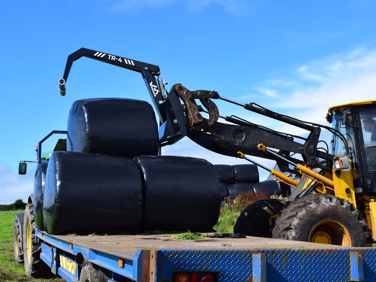 We supply the TR-3 range from JM Agri Design. The slim over-arm design allows the TR bale handler to easily slide between bales and move stacked, settled bales for resale without damaging the plastic wrap.