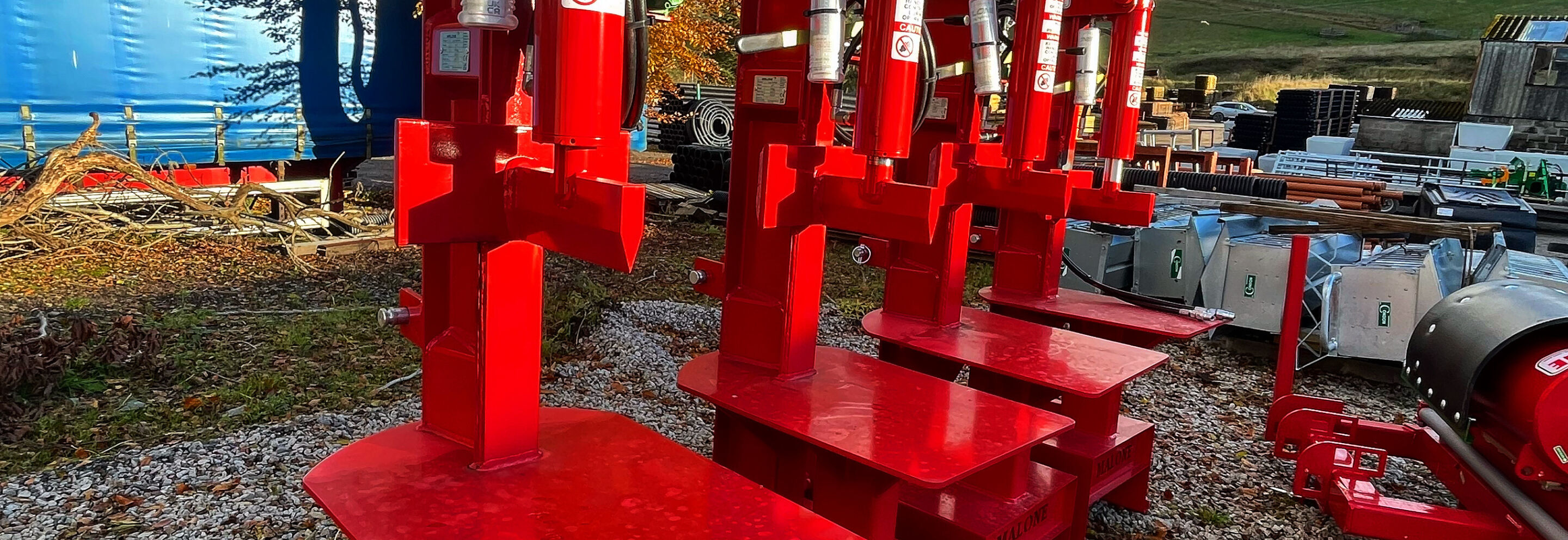 The Logsplitter is an attachment for tractors. Hydraulic power provided by the tractor provides the force required to drive a splitting wedge into a log.
