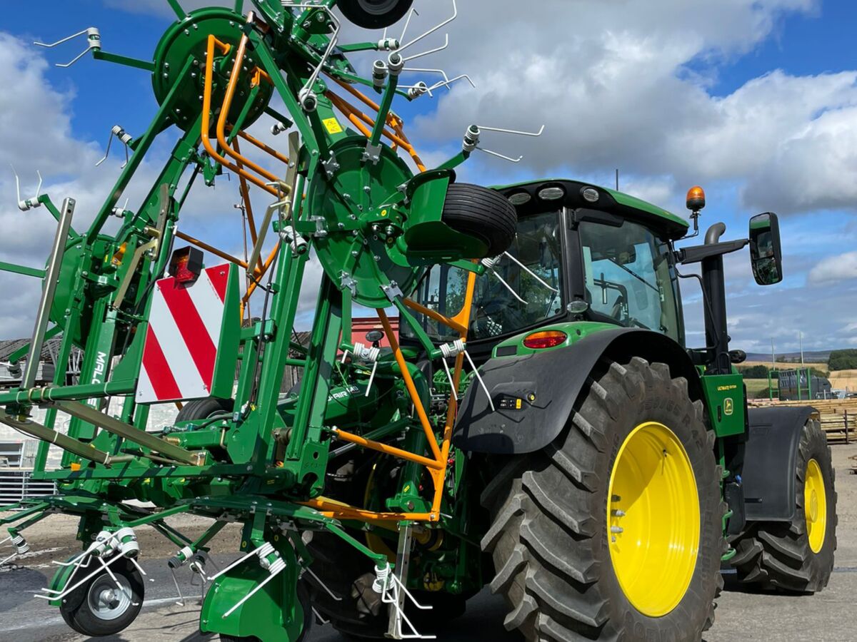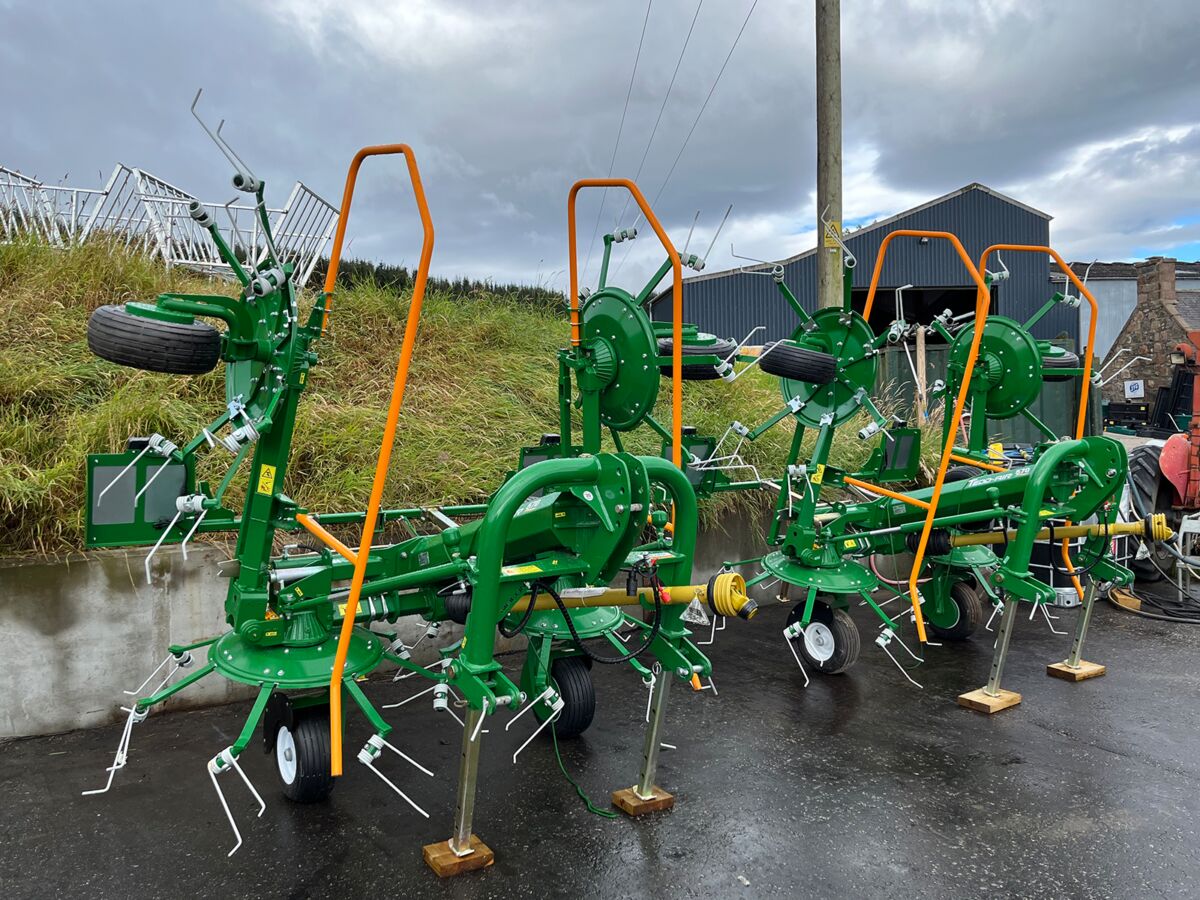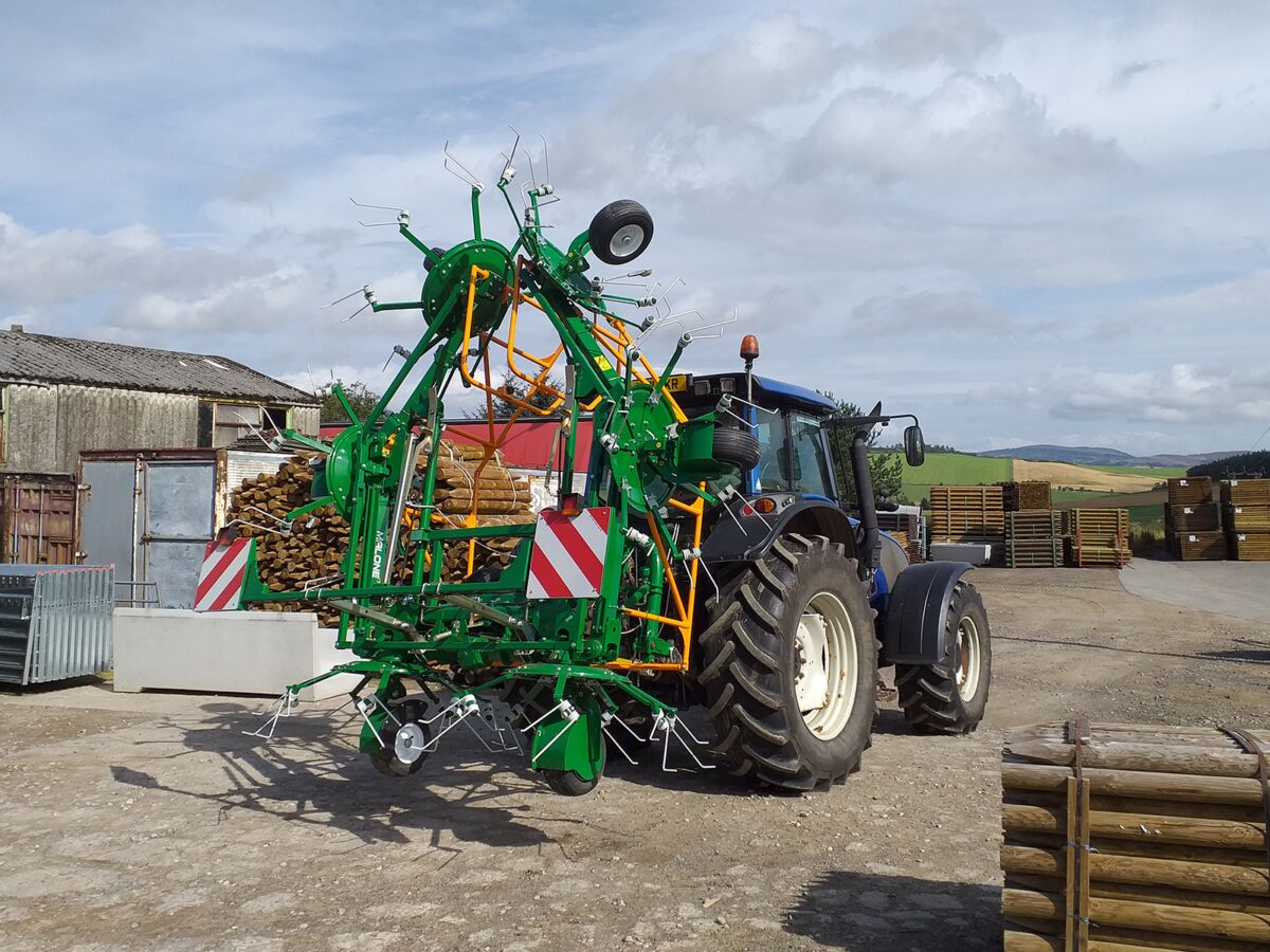 5.7M Tedd-Airs. Hook tines 7 tine arms per rotor, Headland management, “Super flotation”, follows land contours closely, Heavy-duty build quality.